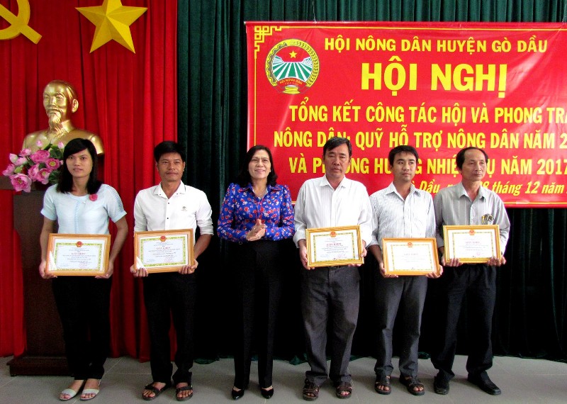 Tại buổi lễ, tập thể Hội Nông dân huyện Gò Dầu đã được UBND tỉnh tặng cờ thi đua đơn vị dẫn đầu năm 2016 và bằng khen cho 9 cá nhân hội viên nông dân có thành tích xuất sắc tiêu biểu; tập thể Hội Nông dân xã Thạnh Đức được Chủ tịch Hội Nông dân tỉnh khen thưởng; UBND huyện Gò Dầu khen thưởng 6 tập thể và 3 cá nhân có thành tích xuất sắc trong công tác Hội và phong trào nông dân năm 2016.