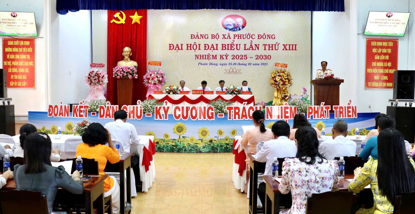 Đại hội diễn ra trong 2 ngày với phương châm là “Đoàn kết - Dân chủ - Kỷ cương - Trách nhiệm - Phát triển”. Phiên chính thức Đại hội Đảng bộ xã Phước Đông, huyện Gò Dầu lần thứ XIII, nhiệm kỳ 2025-2030 khai mạc vào sáng 26.2.2025.