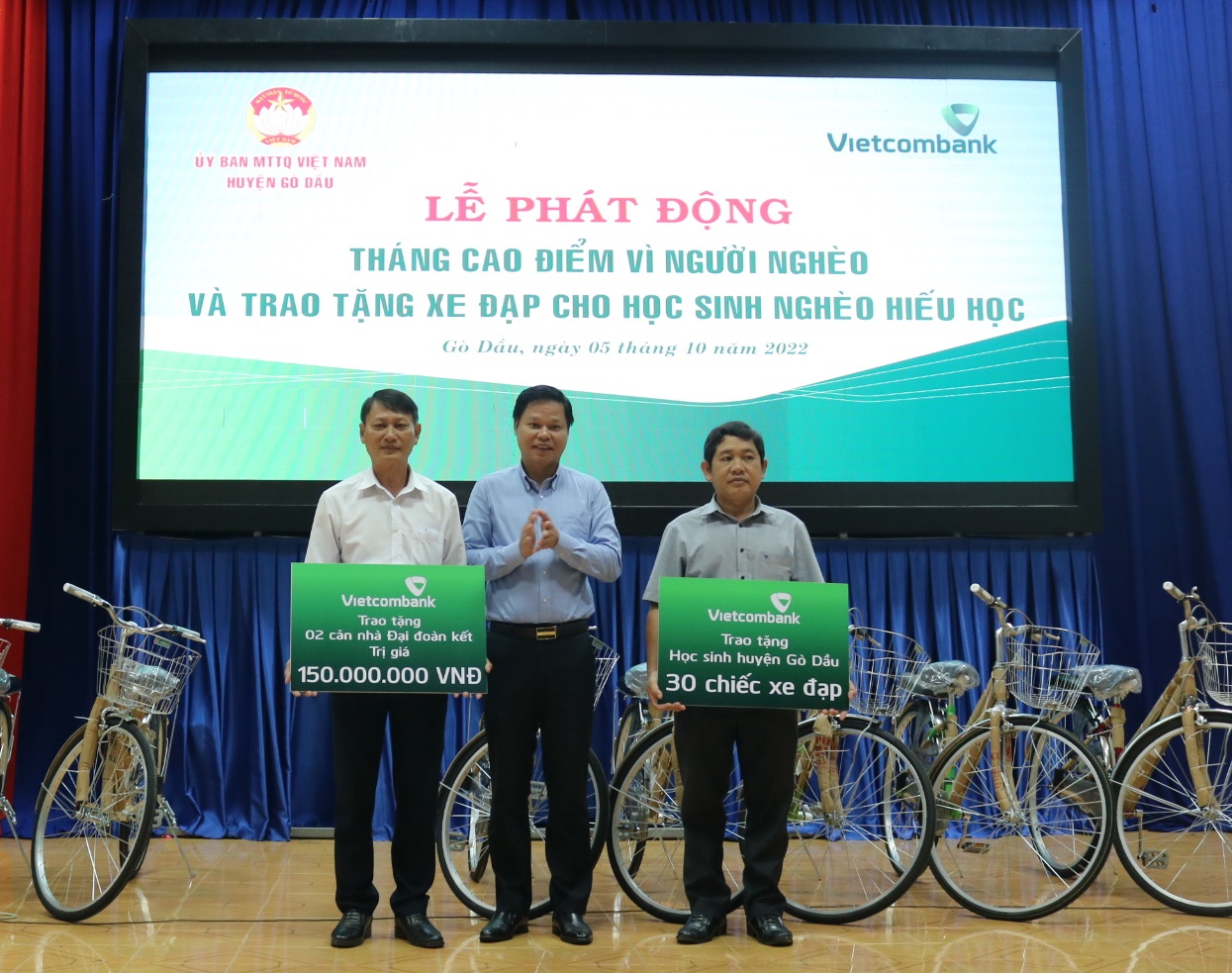 Trong buổi lễ phát động, Ngân hàng Thương mại cổ phần Ngoại thương Việt Nam Chi nhánh Tây Ninh trao tặng 30 chiếc xe đạp cho học sinh có hoàn cảnh khó khăn, trị giá 57 triệu đồng; trao tặng 150 triệu đồng xây tặng 2 căn nhà đại đoàn kết cho người dân gặp khó khăn về nhà ở.
