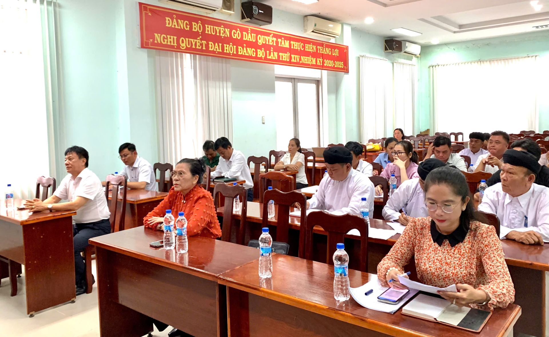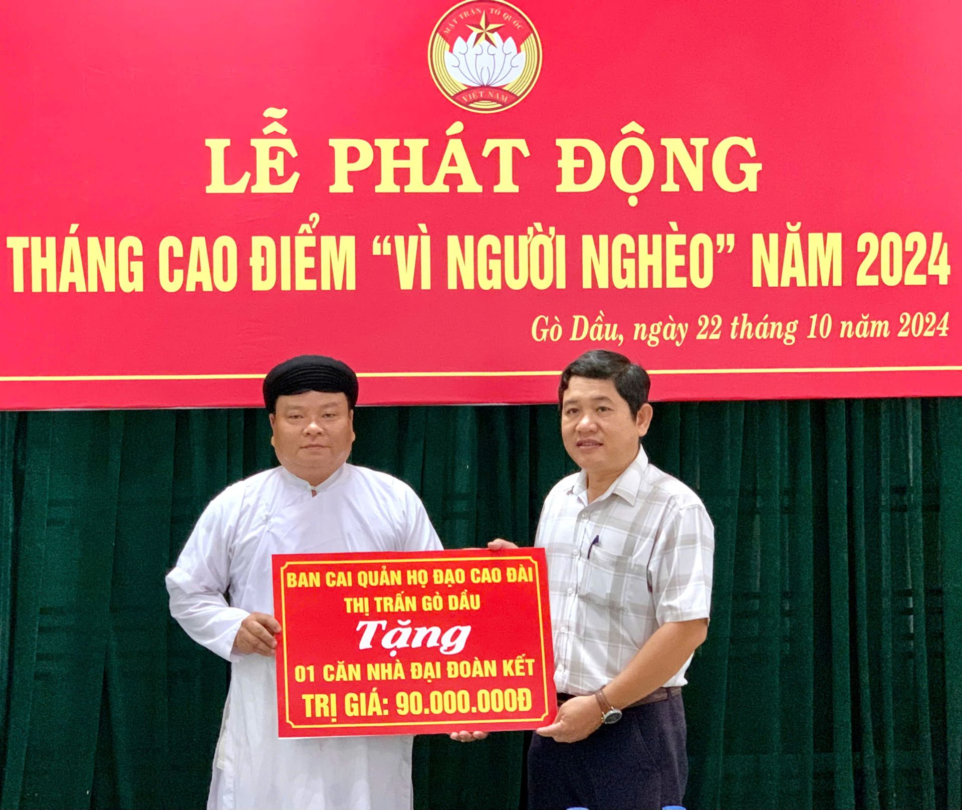 Ban cai quản Họ đạo Cao đài thị trấn Gò Dầu trao biểu trưng tặng 1 căn nhà đại đoàn kết cho UỶ ban MTTQ Việt Nam huyện