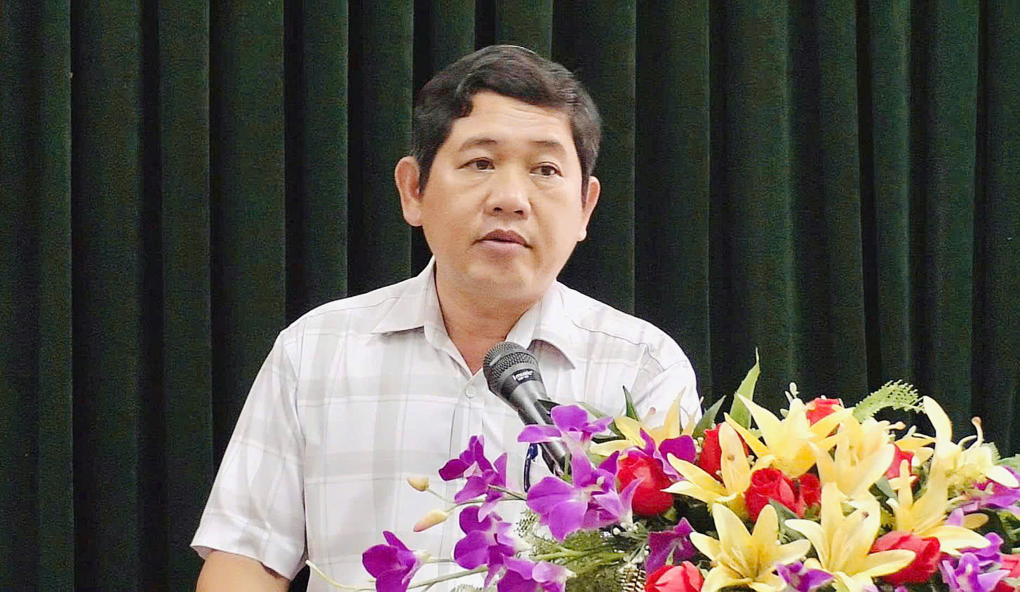 Ông Nguyễn Văn Đậu - Chủ tịch Ủy ban MTTQ Việt Nam huyện, Trưởng Ban vận động quỹ “Vì người nghèo” huyện phát biểu tại lễ phát động.