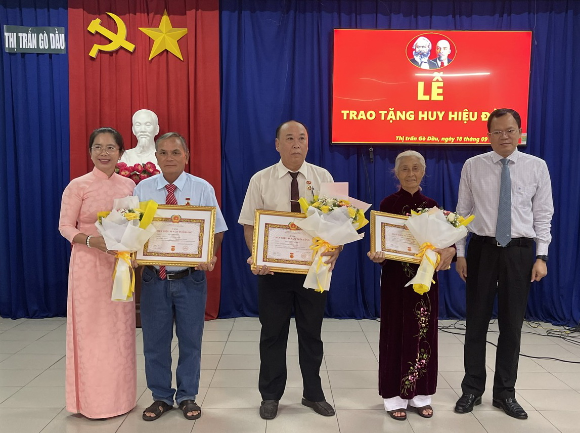 Theo đó, Huy hiệu 55 năm tuổi Đảng được trao cho các đảng viên: Nguyễn Văn Dùm (sinh năm 1948, quê quán xã Thạnh Đức, huyện Gò Dầu); Thái Võ (sinh năm 1947, quê quán xã Yên Sơn, huyện Đô Lương, tỉnh Nghệ An); Trịnh Thị Phụng (sinh năm 1947, quê quán xã Thanh Phước, huyện Gò Dầu); Trần Thị Hồng Thu (sinh năm 1944, quê quán xã Đồng Hướng, huyện Kim Sơn, tỉnh Ninh Bình).