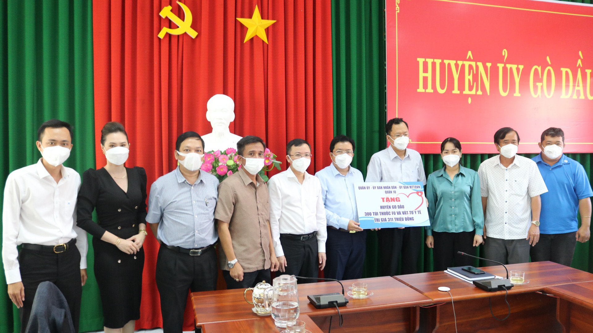 Thay mặt lãnh đạo huyện, ông Huỳnh Thanh Phương- Bí thư Huyện ủy Gò Dầu cảm ơn sự hỗ trợ của lãnh đạo Quận ủy và các cơ quan, ban ngành quận 10 giúp chính quyền và nhân dân huyện Gò Dầu trong công tác phòng, chống dịch.