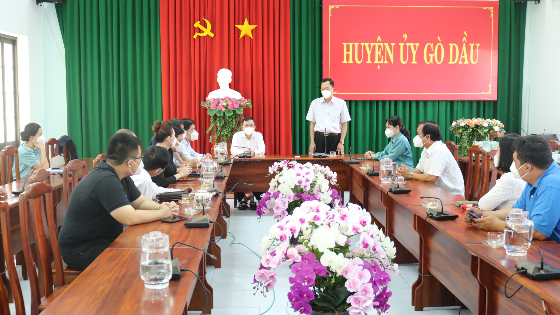 Lãnh đạo huyện Gò Dầu tiếp đoàn có ông Huỳnh Thanh Phương- Bí thư Huyện ủy, bà Nguyễn Thị Thanh Nhàn- Phó Bí thư Thường trực Huyện ủy, Chủ tịch HĐND huyện, ông Nguyễn Văn Nhu- Chủ tịch UBND huyện,