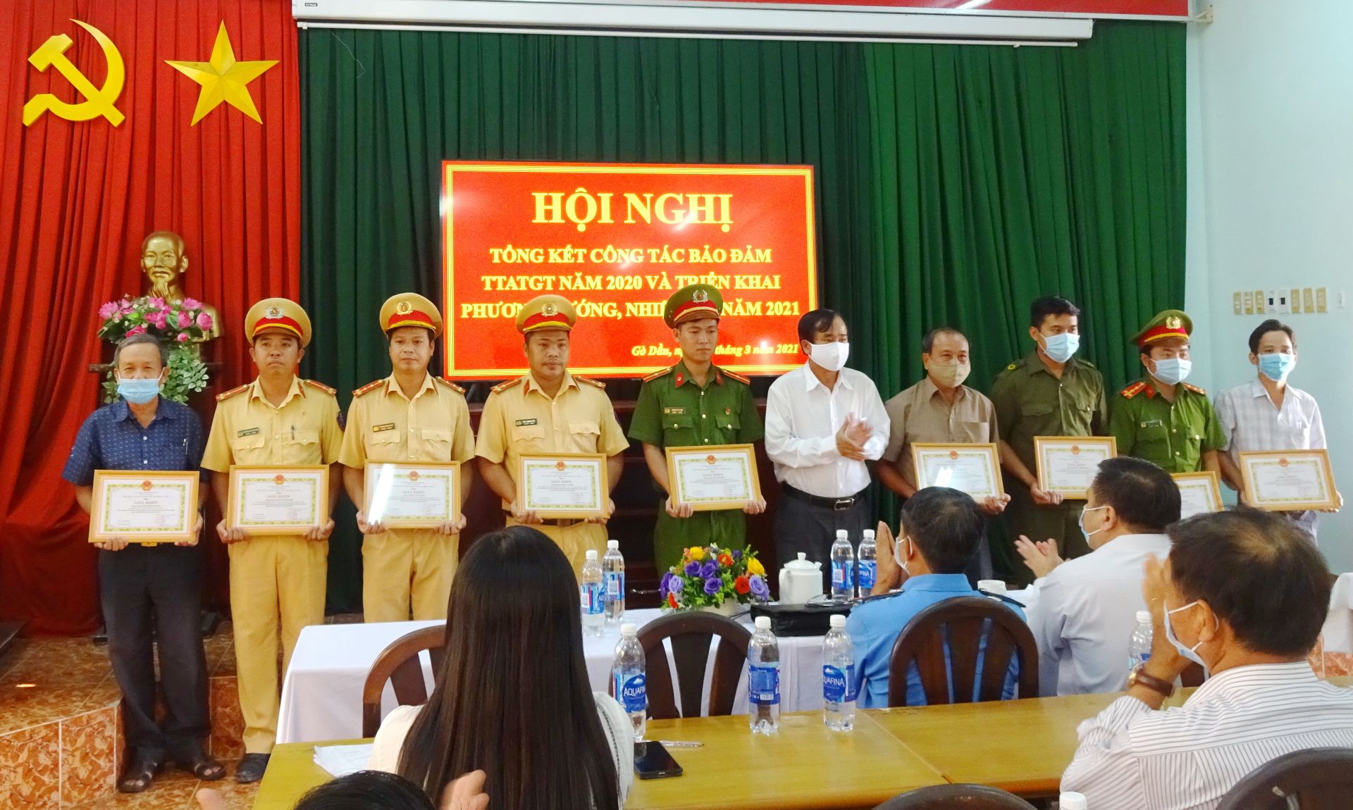 Dịp này, UBND huyện Gò Dầu tặng giấy khen cho 10 tập thể, 12 cá nhân có thành tích xuất sắc trong công tác đảm bảo trật ATGT trong năm 2020.