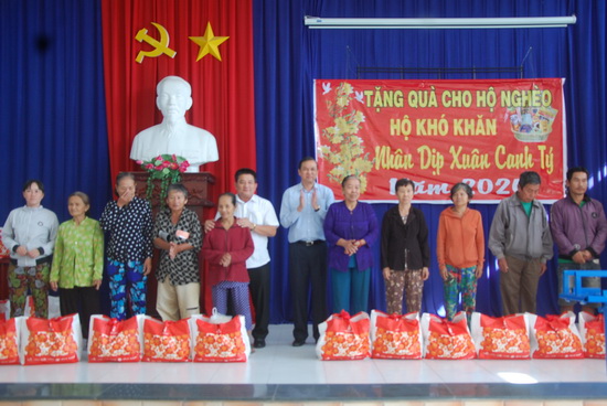 Tổng cộng có 100 phần quà được trao tặng cho người dân tại hai xã, mỗi phần quà trị giá 500.000 đồng. Số quà trên do lãnh đạo tỉnh vận động Công ty Đồng Thuận Hà tài trợ.