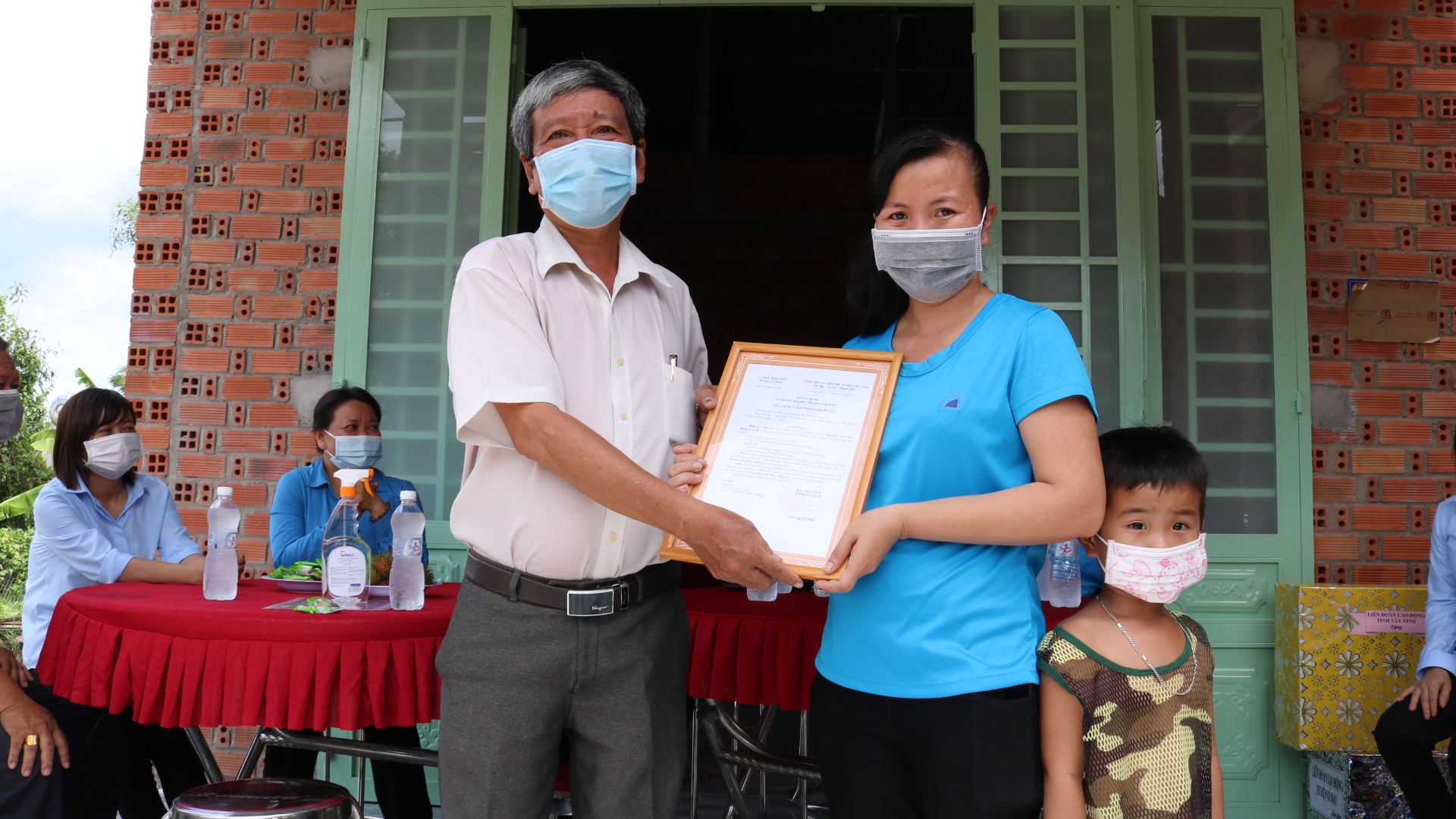 Mái ấm công đoàn được trao cho gia đình chị Nguyễn Thị Thúy Hằng, sinh năm 1987 là đoàn viên Công đoàn cơ sở Công ty TNHH may mặt Summit Việt Nam, hiện ngụ ấp Xóm Mía, xã Phước Trạch. Căn nhà có diện tích 63 m2, chi phí xây dựng 90 triệu đồng, do Liên đoàn Lao động tỉnh hỗ trợ 50 triệu đồng, số tiền còn lại thân nhân gia đình góp thêm.