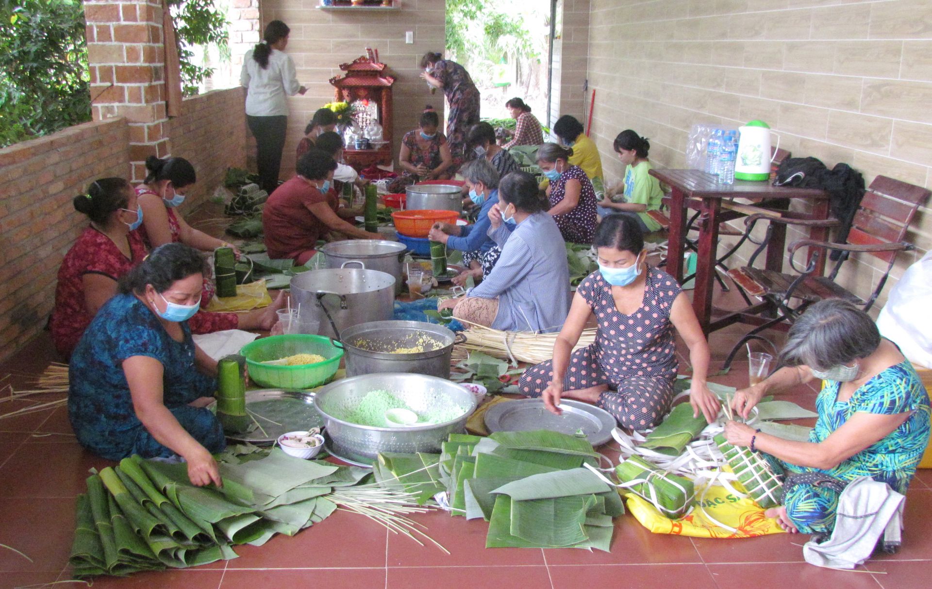 Phụ nữ xã Thanh Phước gói bánh tét tặng các gia đình gặp khó khăn trong dịp Tết Tân Sửu 2021.