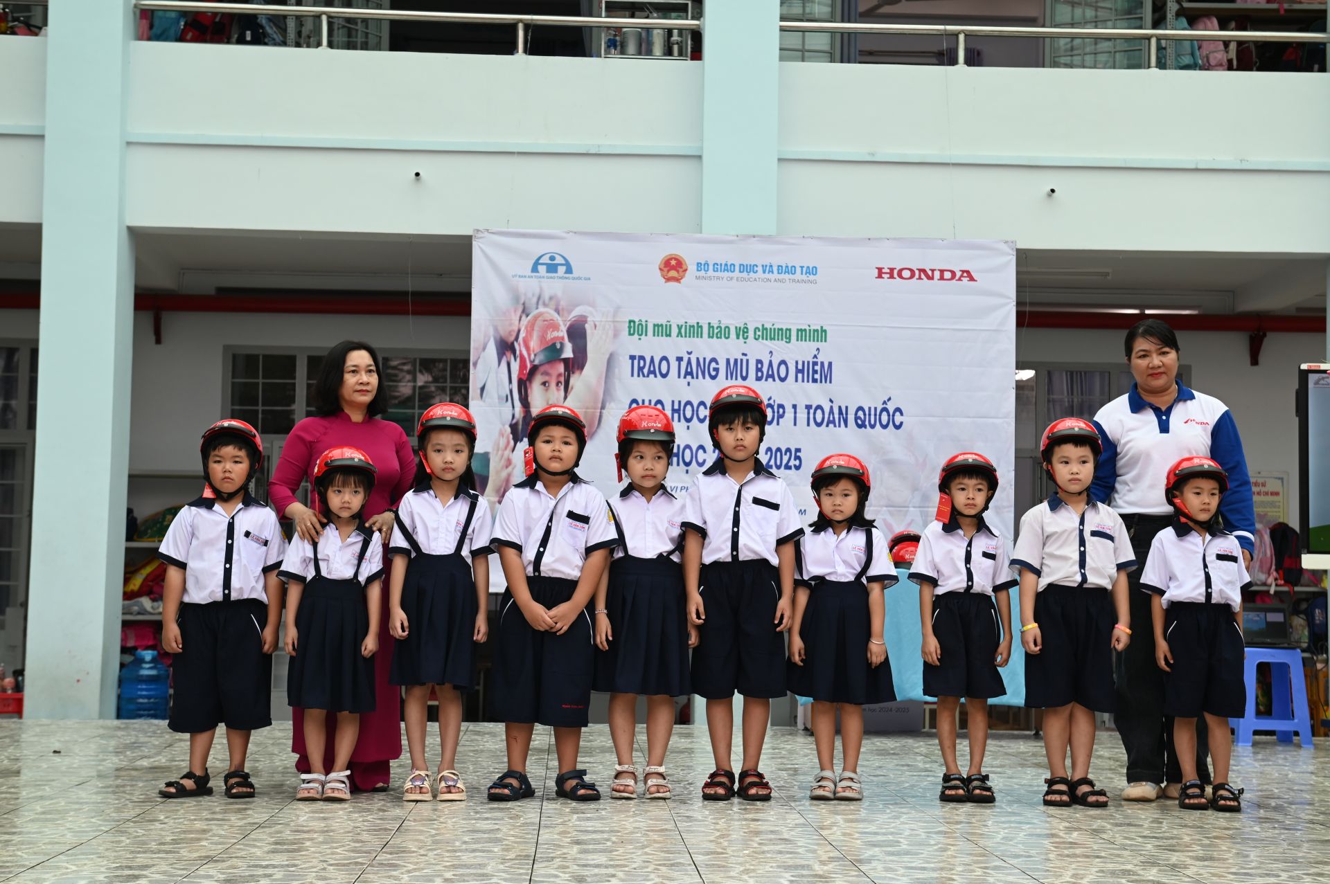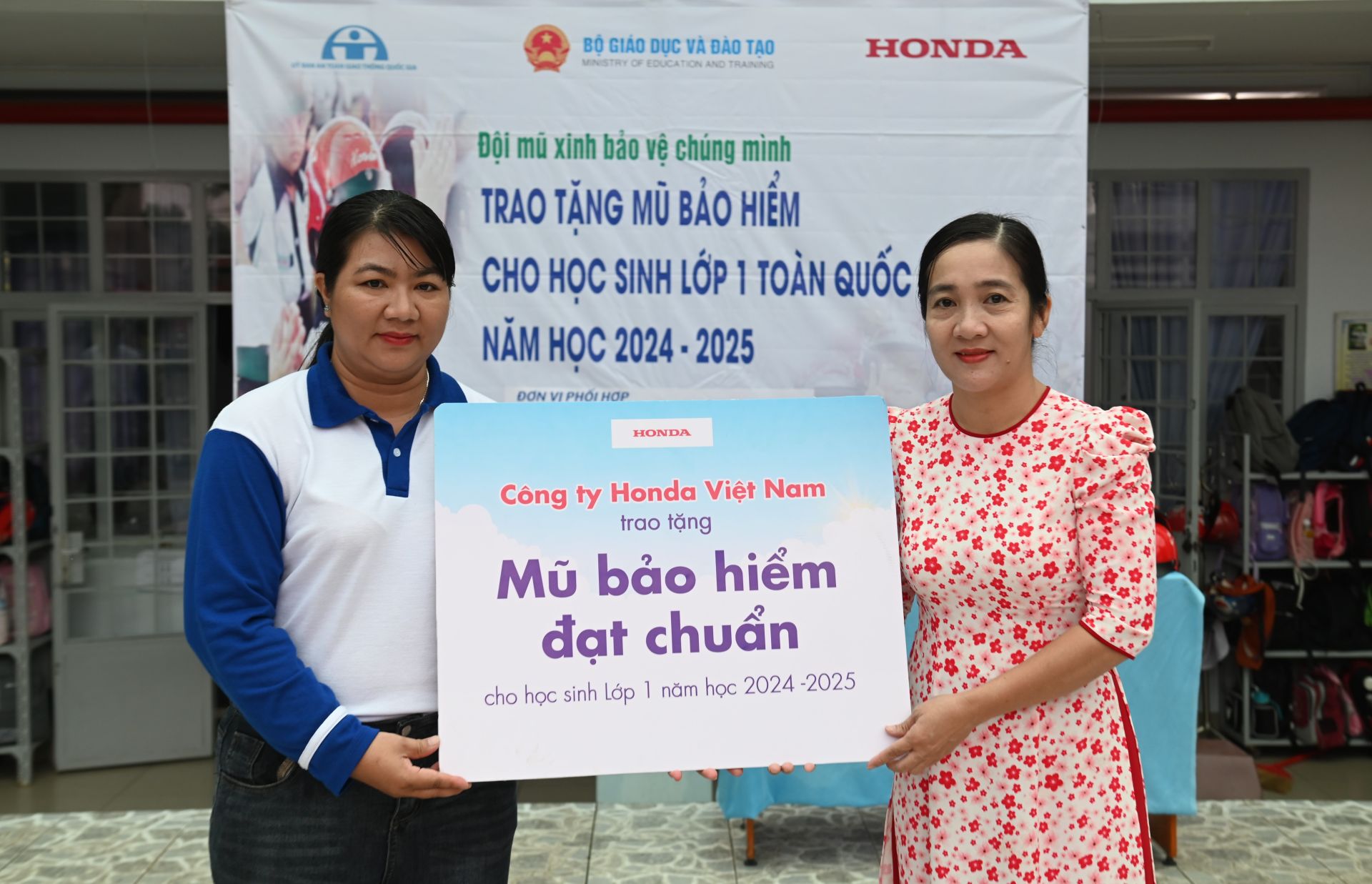 Giữa sân trường, một phông màn giăng lên giới thiệu Chương trình trao tặng MBH cho trẻ em năm 2024 do Uỷ ban ATGT quốc gia, Bộ Giáo dục và Đào tạo (GD&ĐT) và Công ty Honda Việt Nam phối hợp tổ chức. Trước phông màn là chiếc ti vi màn hình rộng cùng hệ thống âm thanh hiện đại được lắp đặt. Cạnh đó, trên một chiếc bàn gỗ với cả chục chiếc MBH màu đỏ được trưng bày.