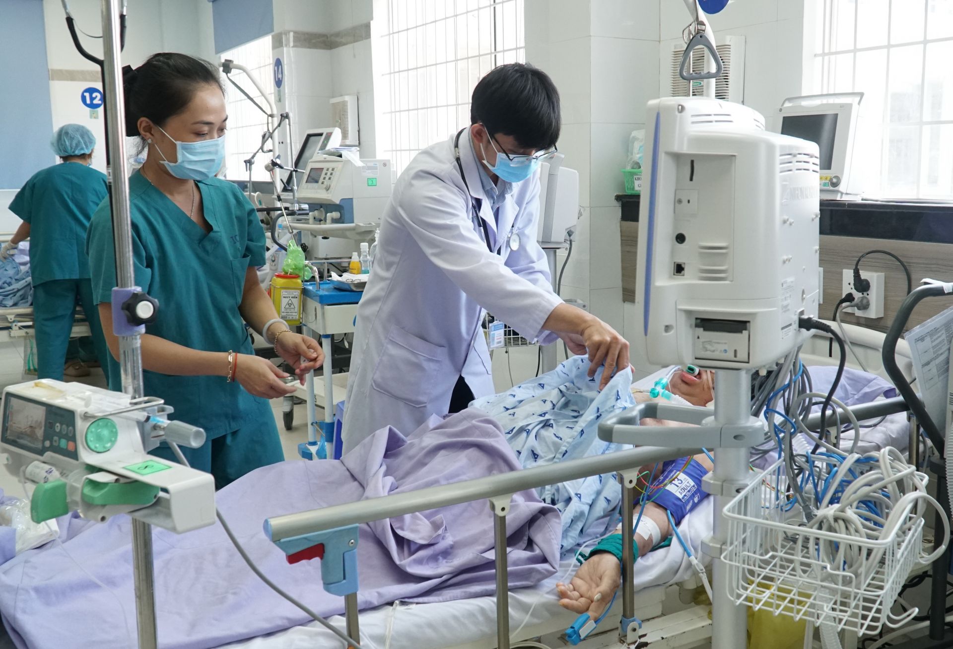 Bác sĩ điều trị cho bệnh nhân tại Khoa Hồi sức tích cực và chống độc - ICU Bệnh viện Đa khoa Tây Ninh.