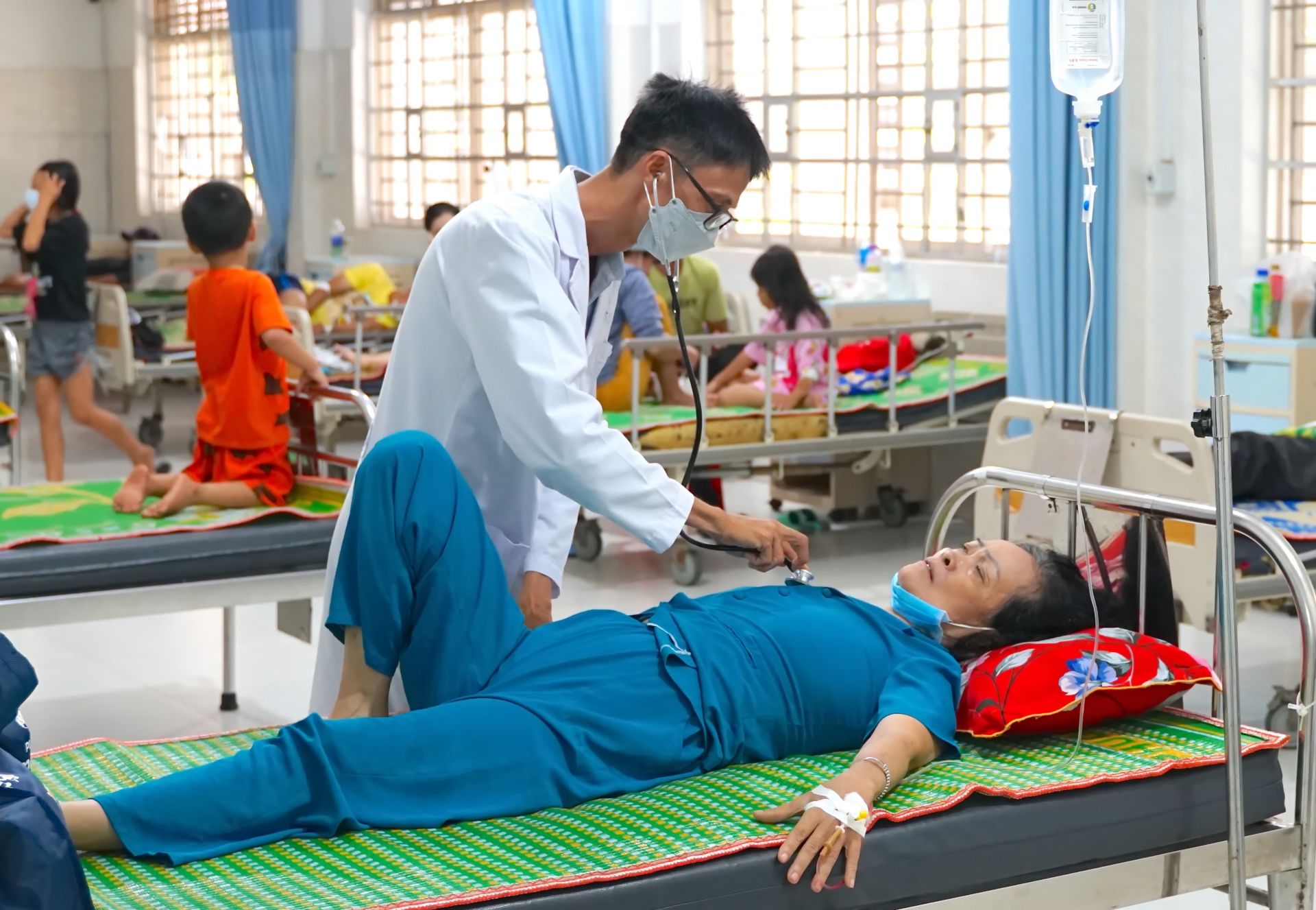 Bác sĩ tại Trung tâm Y tế huyện Tân Biên thăm khám bệnh nhân.