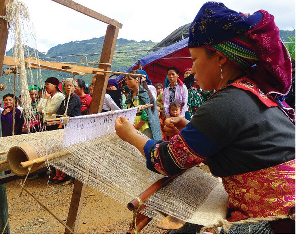 | Dệt vải lanh đòi hỏi sự tỉ mỉ, khéo léo của người phụ nữ Mông. |