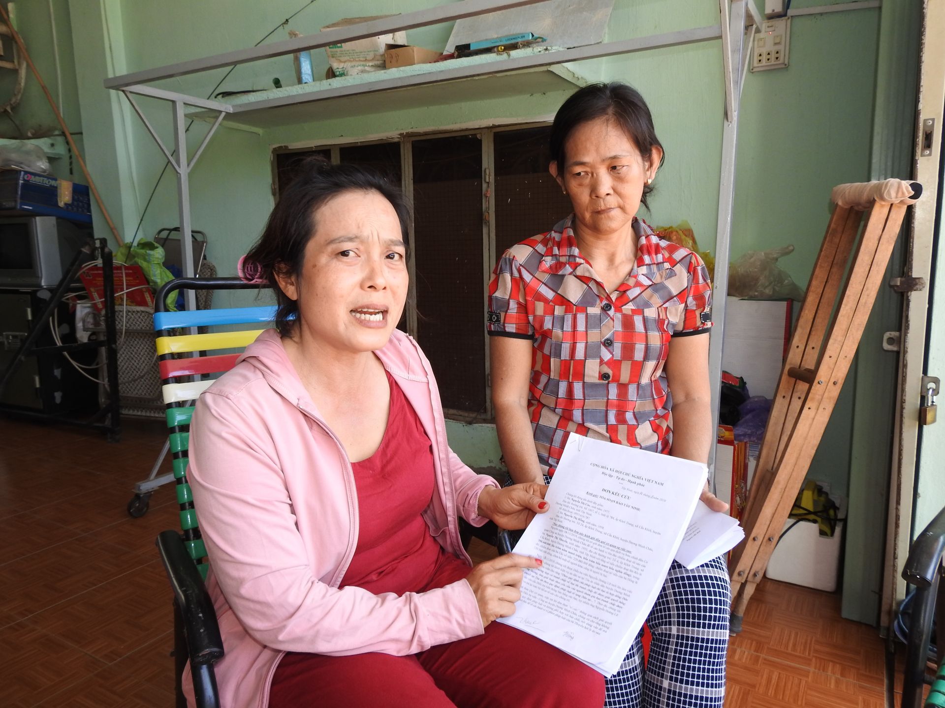 Bà Cúc (bên trái) và bà Hồng trình bày lại vụ việc.