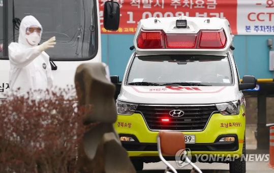 Xe cứu thương chở bệnh nhân Covid-19 tới bệnh viện tại TP Daegu (Ảnh: YONHAP)