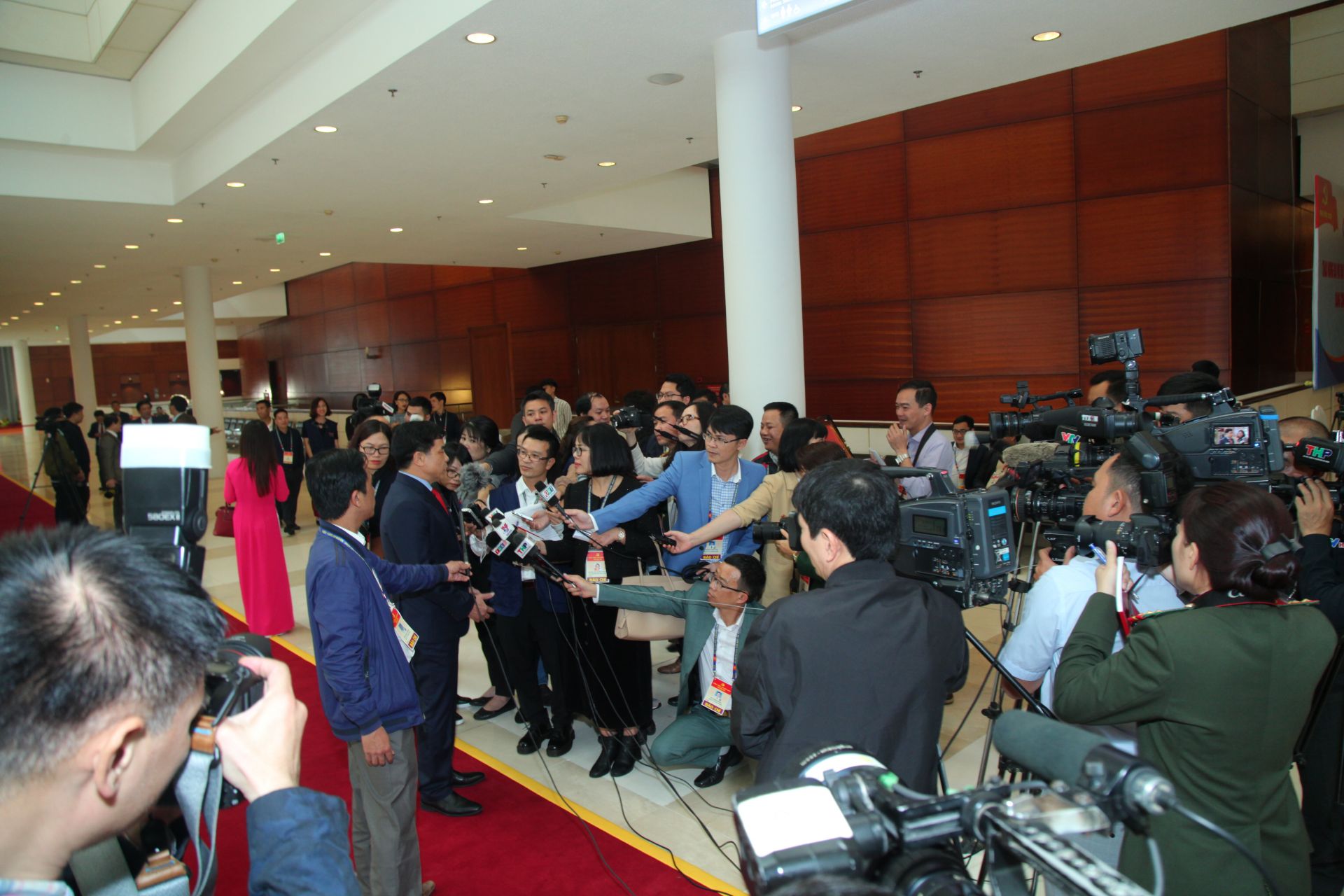 Các đại biểu trả lời phỏng vấn của phóng viên các cơ quan báo chí