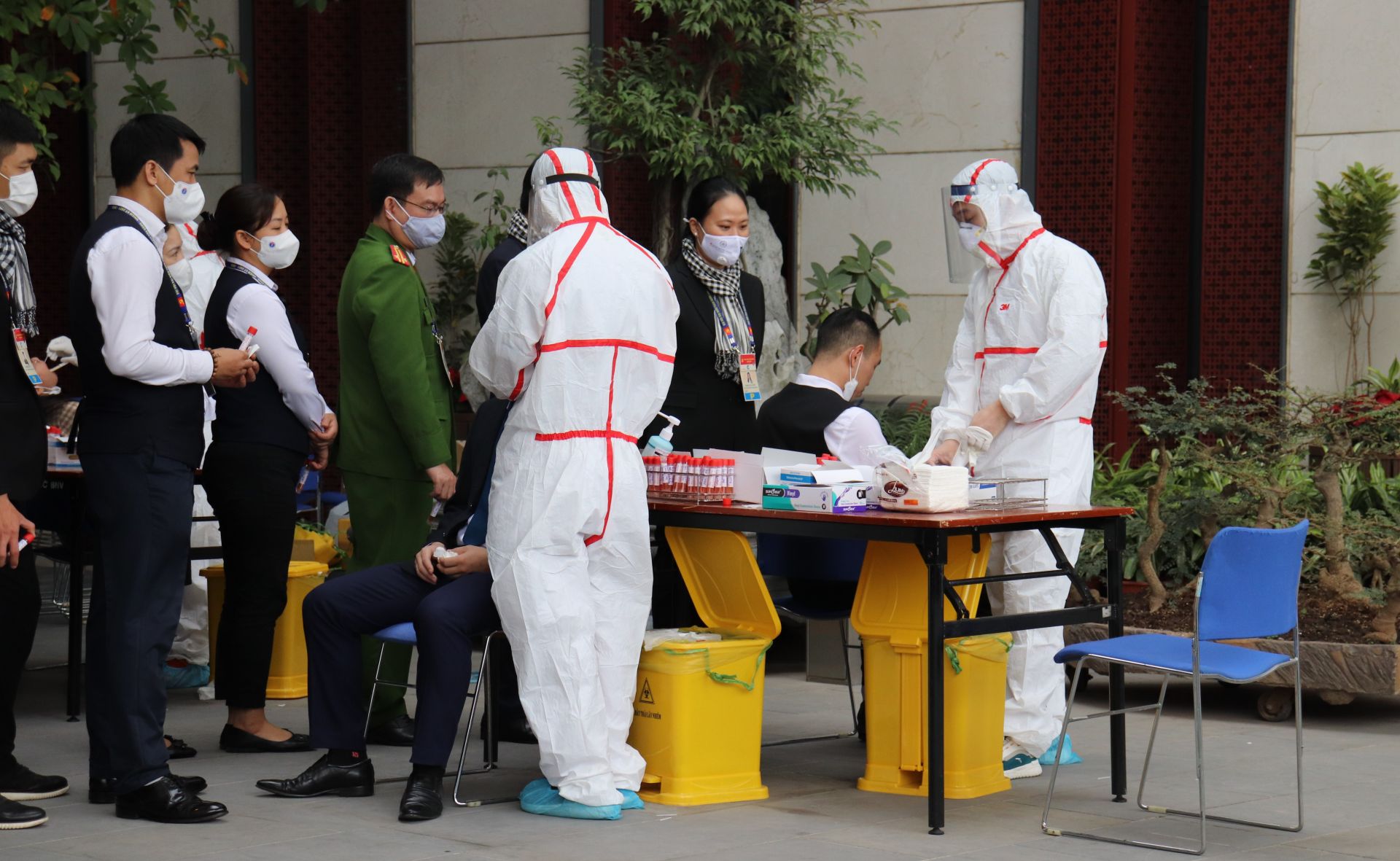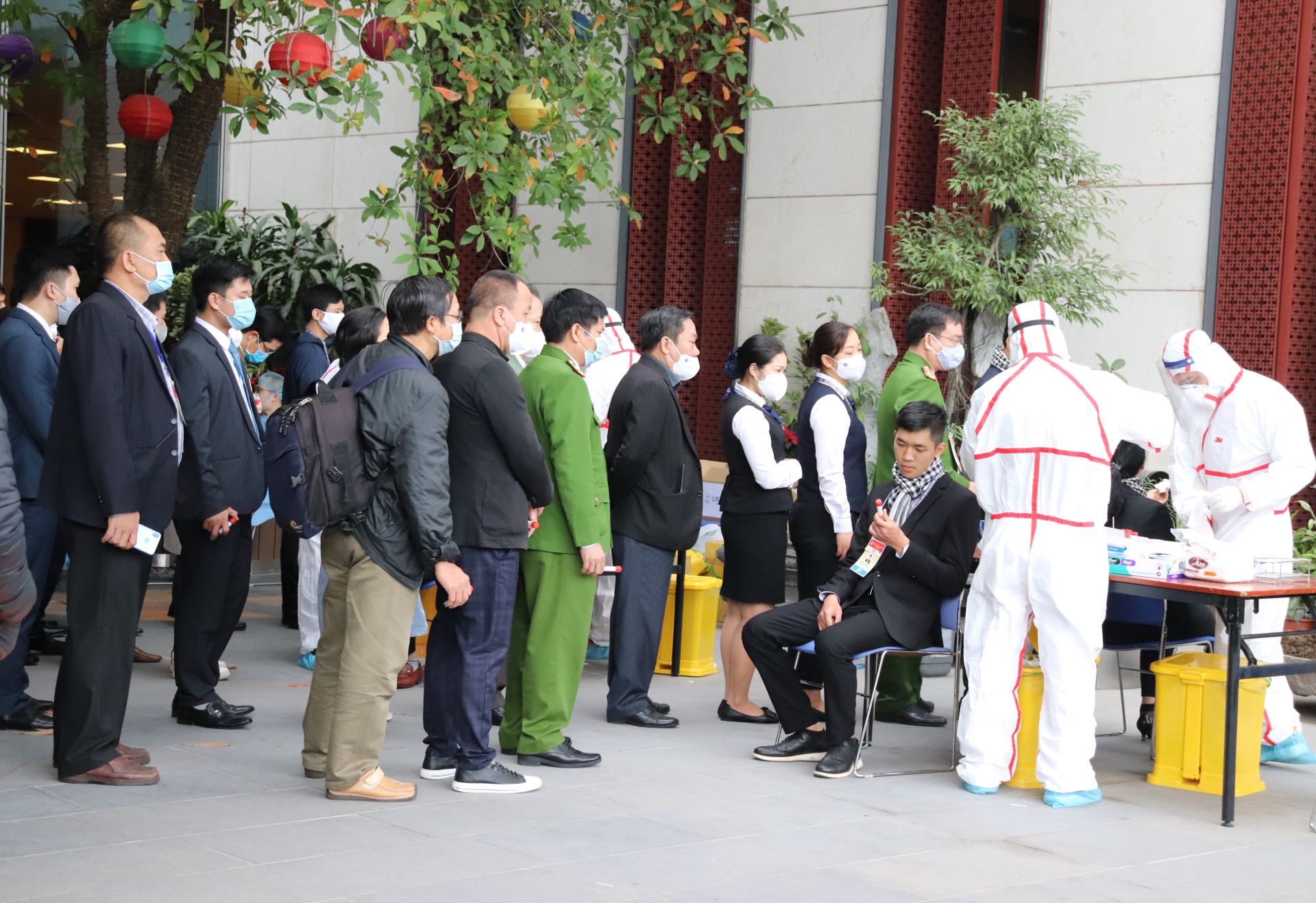 Sáng nay 29.1, tất cả các phóng viên, nhân viên an ninh, phục vụ đều được xét nghiệm Covid-19 trước khi tham gia tác nghiệp tại Đại hội.