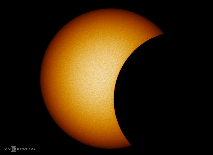 Ảnh chụp lúc 12h36 phút, độ che phủ đạt khoảng 30%. Ảnh: Đài thiên văn Phố Hiến, Hưng Yên.
