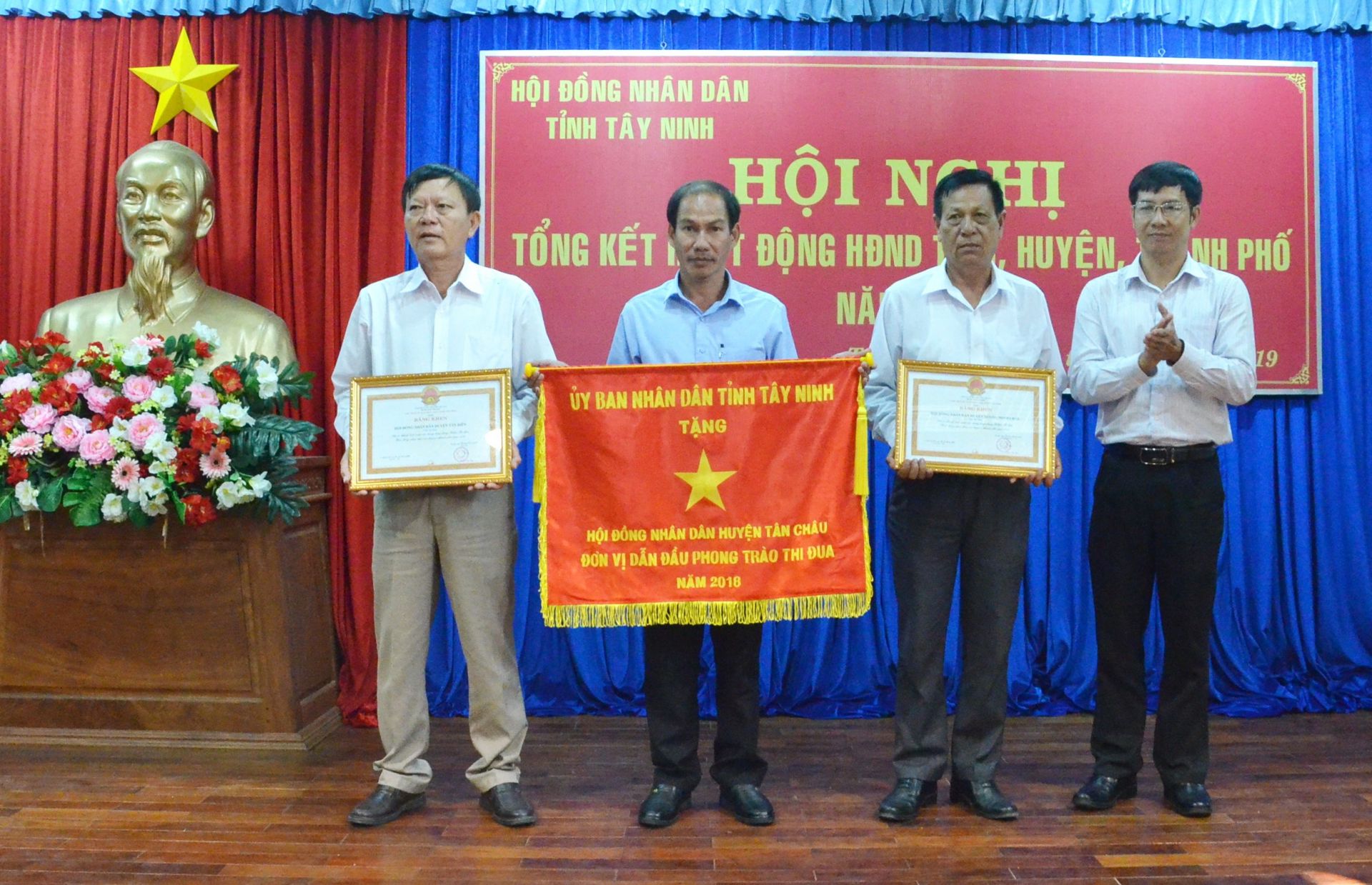 Dịp này, HĐND huyện Tân Châu được UBND tỉnh trao cờ đơn vị dẫn đầu phong trào thi đua năm 2018, HĐND các huyện Tân Biên và Dương Minh Châu được tặng bằng khen của UBND tỉnh.