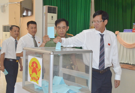 Đại biểu HĐND huyện bỏ phiếu bầu chức danh Chủ tịch UDND huyện.