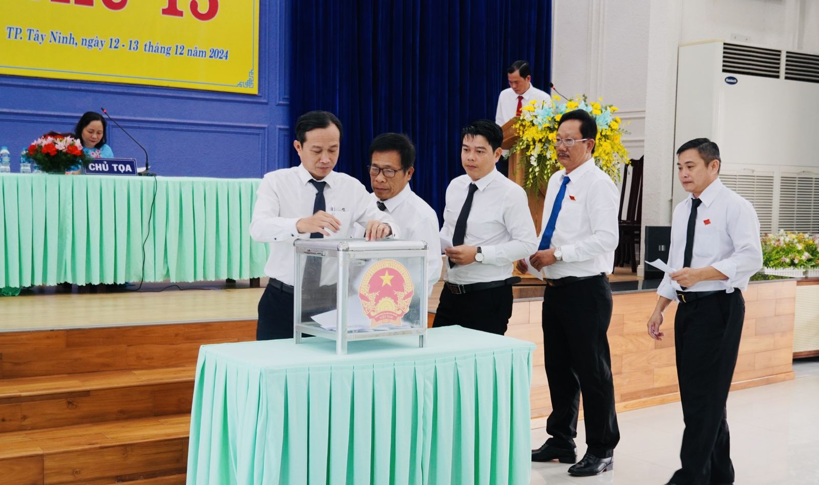 Đồng thời tiến hành bầu bổ sung Uỷ viên UBND thành phố nhiệm kỳ 2021-2026 đối với 2 đại biểu là ông Nguyễn Thanh Long- Chánh Văn phòng HĐND-UBND thành phố và ông Nguyễn Nhật Lê Vinh- Trưởng Phòng Văn hóa và Thông tin thành phố. Kết quả 2/2 đại biểu đã trúng cử Uỷ viên UBND thành phố nhiệm kỳ 2021-2026, với số phiếu bầu đạt tỷ lệ cao từ 93% trở lên.