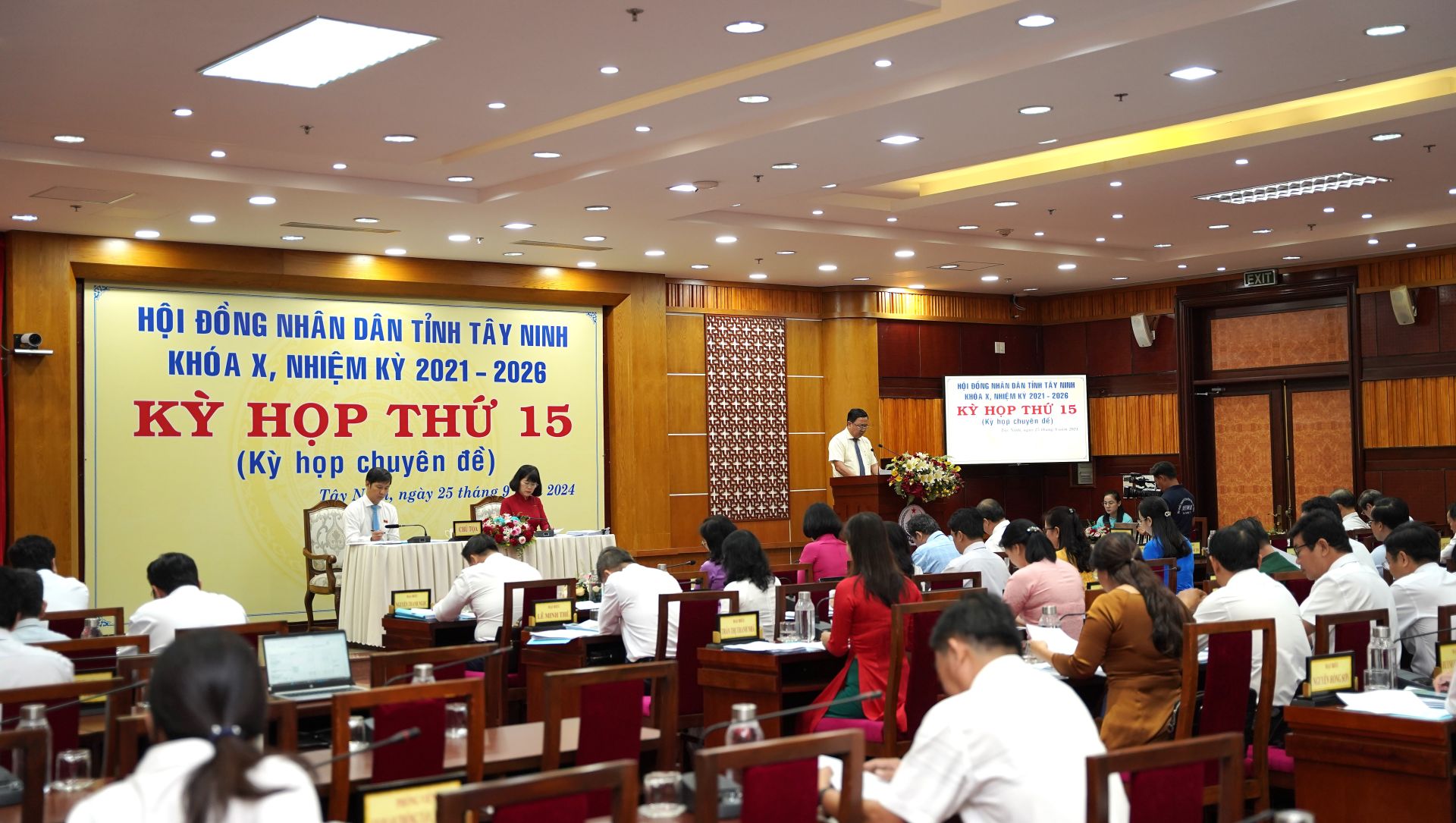 Ngày 25.9, HĐND tỉnh khoá X nhiệm kỳ 2021-2026 tổ chức kỳ họp thứ 15 (kỳ họp chuyên đề tháng 9.2024) với sự tham dự của 45/51 đại biểu HĐND tỉnh. Bí thư Tỉnh uỷ, Chủ tịch HĐND tỉnh Nguyễn Thành Tâm và Phó Chủ tịch Thường trực HĐND tỉnh Nguyễn Đài Thy chủ trì kỳ họp.