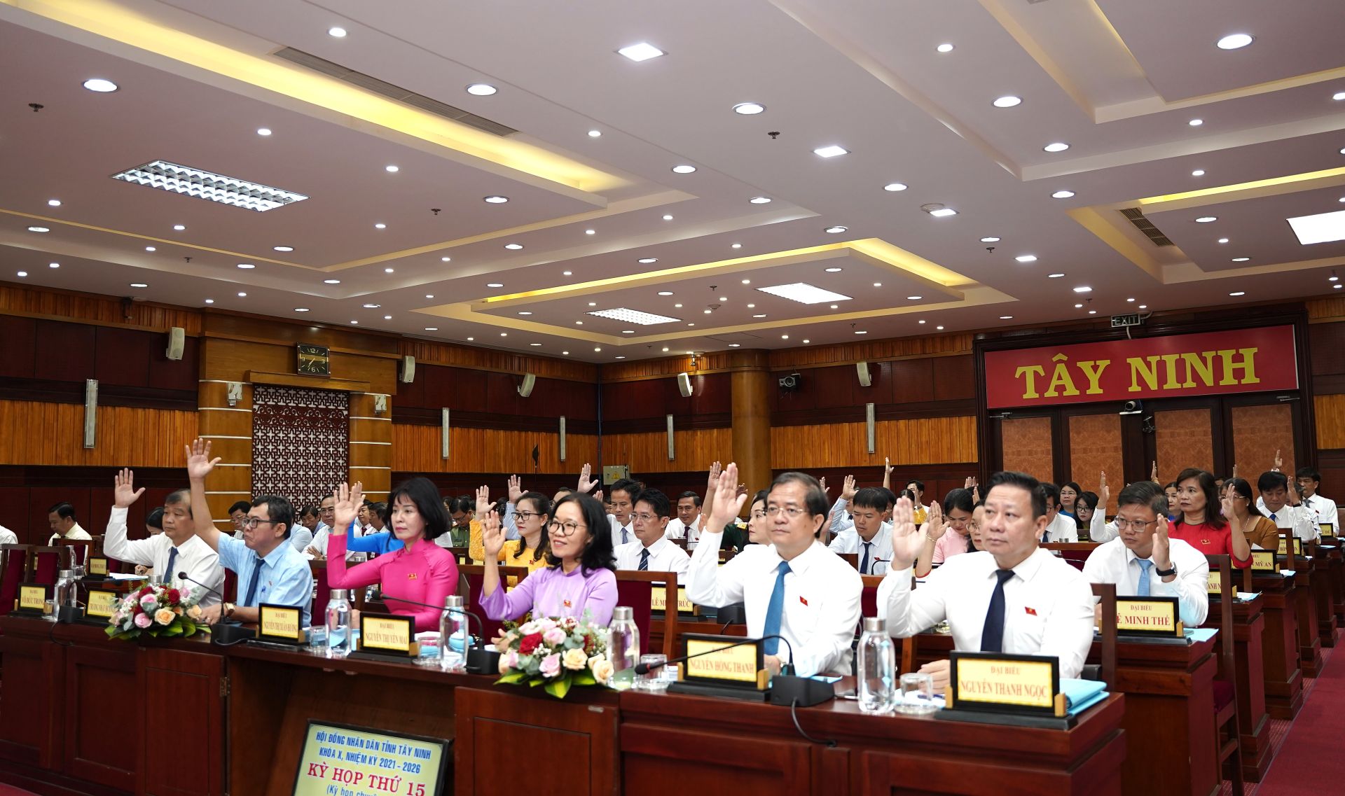 Các nghị quyết chuyên đề được thảo luận, xem xét thông qua tại kỳ họp này có nhiều nghị quyết thuộc lĩnh vực đầu tư công, như: nghị quyết phê duyệt chủ trương đầu tư dự án mua sắm thiết bị dạy học tối thiểu cho các trường công lập trên địa bàn tỉnh; nghị quyết phê duyệt chủ trương đầu tư dự án chợ Long Hoa (khu A-B); nghị quyết phê duyệt chủ trương đầu tư dự án nâng cấp Nghĩa trang liệt sĩ Đồi 82- Tây Ninh; nghị quyết điều chỉnh, bổ sung Kế hoạch đầu tư công trung hạn giai đoạn 2021-2025 - nguồn ngân sách Nhà nước; nghị quyết điều chỉnh, bổ sung Kế hoạch đầu tư công năm 2024- nguồn ngân sách địa phương…
