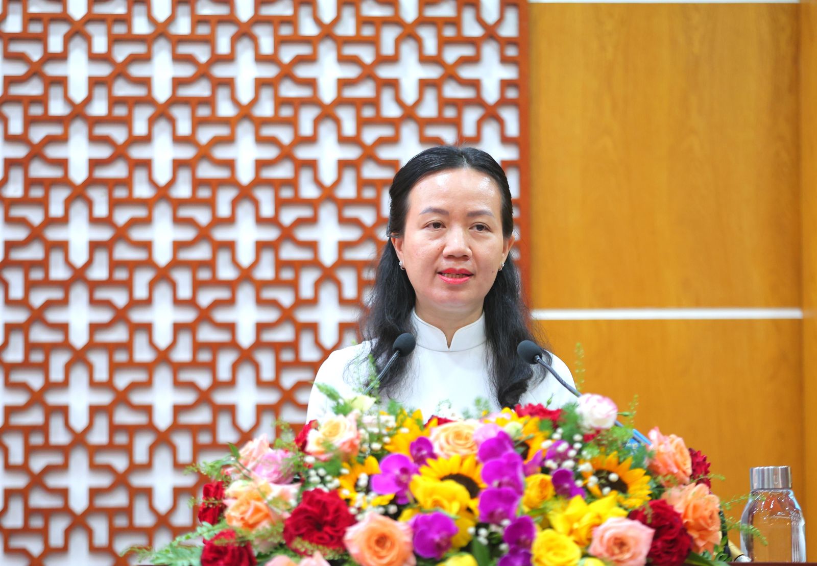 Giám đốc sở Nội vụ Nguyễn Thị Thu Hiền trình bày tờ trình ban hành Nghị quyết về việc tổ chức lại các cơ quan chuyên môn thuộc UBND tỉnh.
