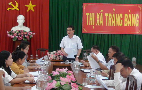 Chiều 18.6 Chủ tịch HĐND thị xã Trảng Bàng Hồ Văn Hồng cùng các ngành chức năng đã đến giám sát chuyên đề việc thực hiện Chương trình mục tiêu quốc gia giảm nghèo bền vững từ năm 2016 đến năm 2020 tại UBND thị xã. Cùng làm việc có ông Hà Minh Dảo-Phó Chủ tịch UBND huyện.