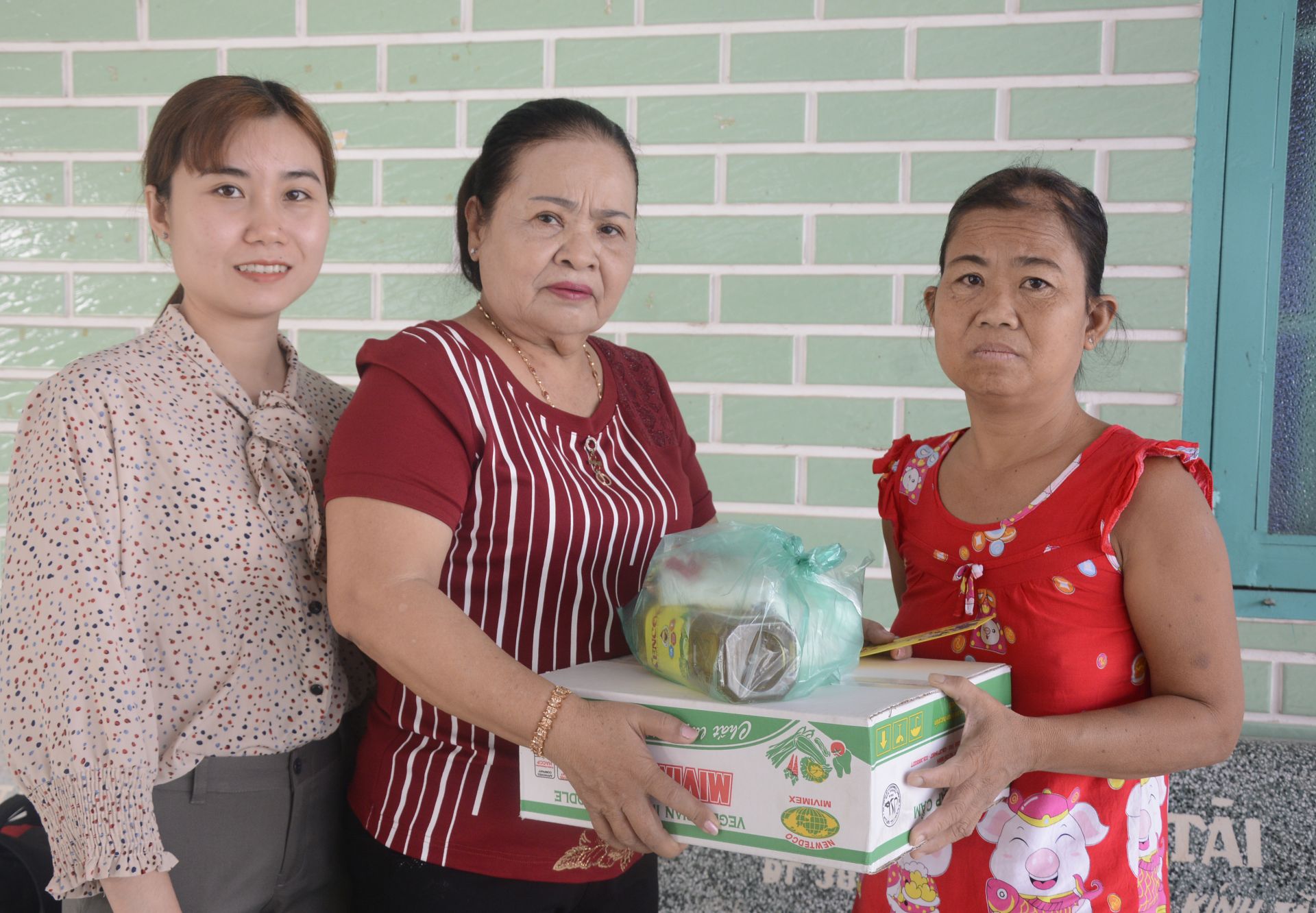 Bà Nguyễn Thị Hưởng (giữa) trong một lần tặng quà cho bà Nguyễn Thị Thuấn – một bệnh nhân nghèo ở Hoà Thành. Ảnh chụp trước khi bùng phát dịch Covid-19