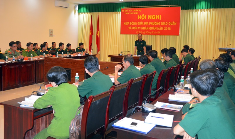 Chiều 3.1.2018, đại tá Nguyễn Văn Trứ - Chỉ huy trưởng Bộ Chỉ huy quân sự tỉnh Tây Ninh chủ trì hội nghị hiệp đồng với các đơn vị giao nhận quân năm 2018.