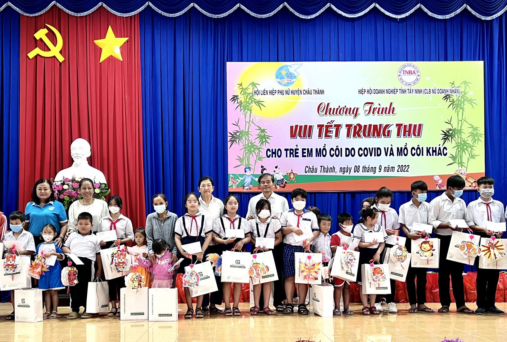 Sáng 8.9, Hiệp hội Doanh nghiệp tỉnh phối hợp Hội LHPN huyện Châu Thành tổ chức chương trình vui tết Trung thu cho trẻ em mồ côi, trong đó có trẻ em mồ côi do Covid-19.