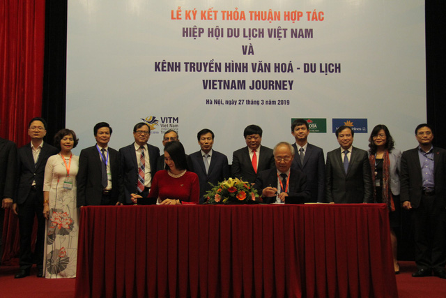 Đại diện Hiệp hội du lịch Việt Nam và Kênh Truyền hình Đài Tiếng nói Việt Nam ký kết Thỏa thuận hợp tác truyền thông