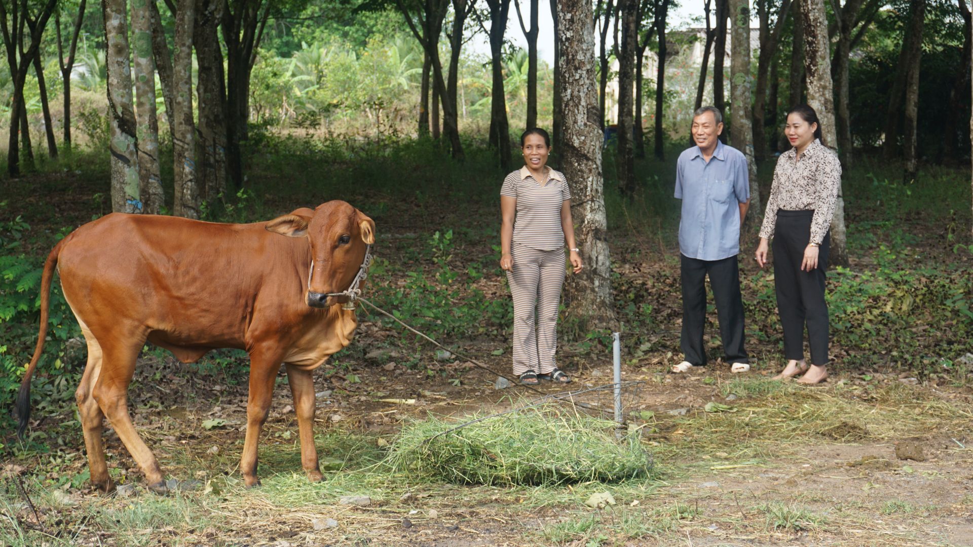 Một hộ dân được hỗ trợ bò tại xã Suối Đá, huyện Dương Minh Châu.