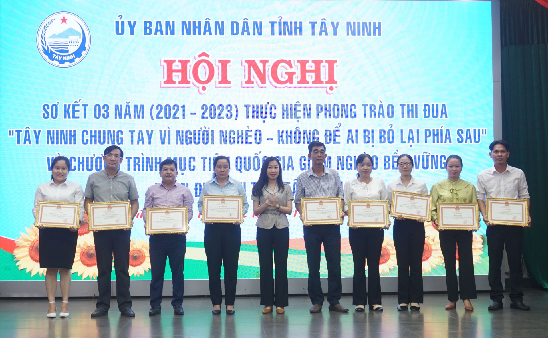 Theo kết quả rà soát hộ nghèo giai đoạn 2021-2023, tỷ lệ hộ nghèo toàn tỉnh giảm dần qua các năm, từ 1,83% năm 2021, 1,09% năm 2022 và đến năm 2023 còn 0,67%. Trong giai đoạn 2021-2023, phong trào thi đua “Tây Ninh chung tay vì người nghèo - Không để ai bị bỏ lại phía sau” với sự vào cuộc của cả hệ thống chính trị từ tỉnh đến cơ sở, tạo thành phong trào thi đua rộng khắp.