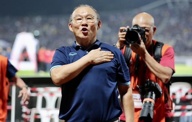 HLV Park Hang-seo cảm ơn người hâm mộ trong trận cuối cùng với tuyển Việt Nam. Ảnh: Hữu Phạm