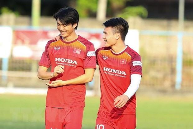 Quang Hải có thể sẽ thế chỗ Tuấn Anh (trái) ở trận gặp Indonesia. (Ảnh: Hoàng Linh/TTXVN)