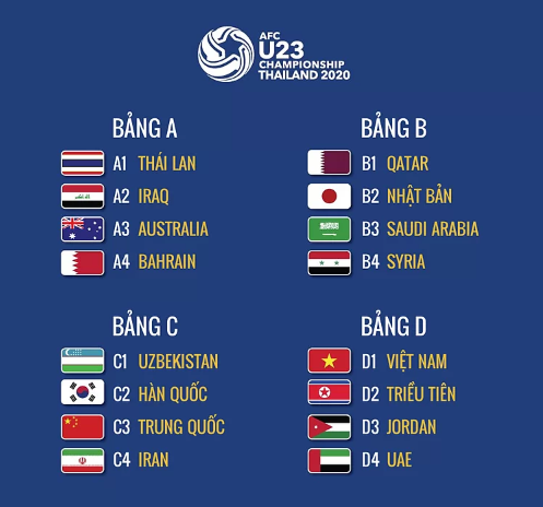 Vòng chung kết U23 châu Á diễn ra tại Thái Lan từ 8/1/2020 đến 26/1/2020. Tại vòng bảng, Việt Nam lần lượt gặp UAE (10/1), Jordan (13/1) và Triều Tiên (16/1).