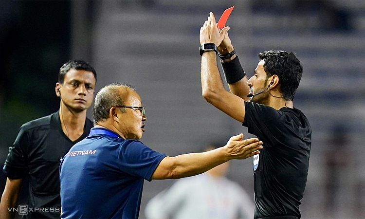 HLV Park Hang-seo phải tự trả tiền phạt cho tấm thẻ đỏ trong trận chung kết SEA Games 30. Ảnh: Đức Đồng
