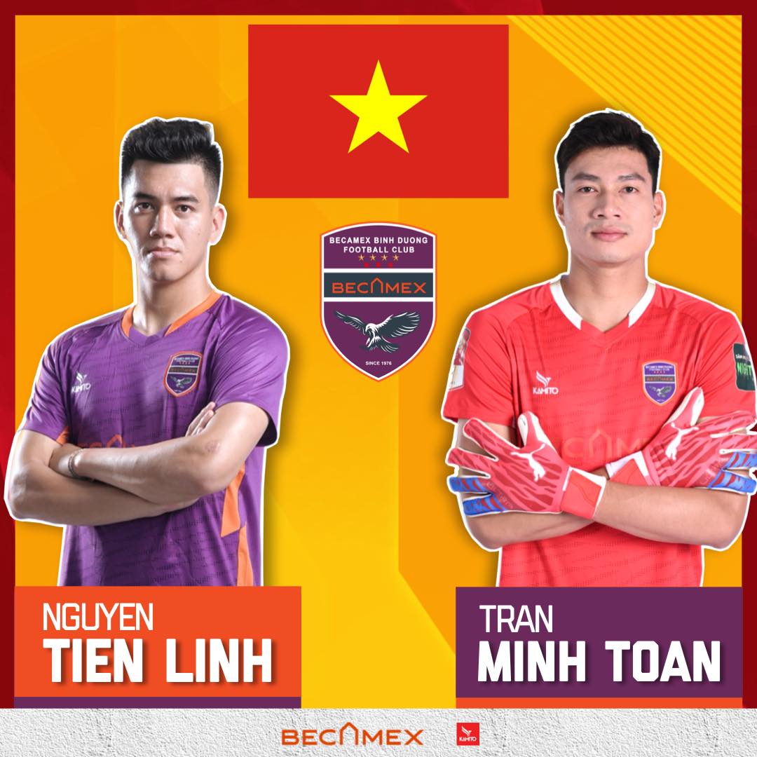 Becamex Bình Dương có 2 cái tên được triệu tập lên đội tuyển quốc gia là tiền đạo Nguyễn Tiến Linh và thủ môn Trần Minh Toàn - Ảnh: Becamex Binh Duong FC