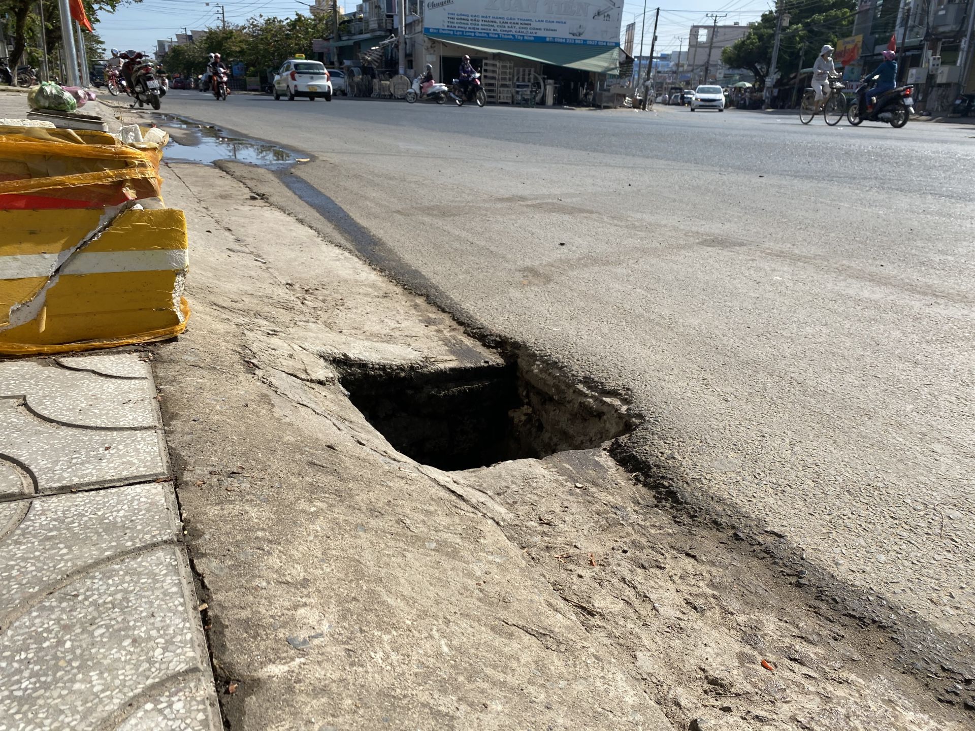 Người dân cho biết, sau khi TP.Tây Ninh nâng cấp vỉa hè, hệ thống chiếu sáng, thoát nước đường Lạc Long Quân thì hố gas nằm trước nhà số 286 có nắp đậy bằng kim loại. Tuy nhiên, có thể do nắp hố gas được làm bằng kim loại, nhưng quá mỏng, vì vậy khi nhiều xe tải đậu lên đã gây ra hư hỏng.