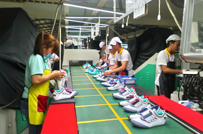 Hiệp định EVFTA vừa là cơ hội và cũng là thách thức cho doanh nghiệp nhỏ và vừa- Ảnh: Công nhân sản xuất giày tại Công ty VMC Hoàng Gia Tây Ninh.