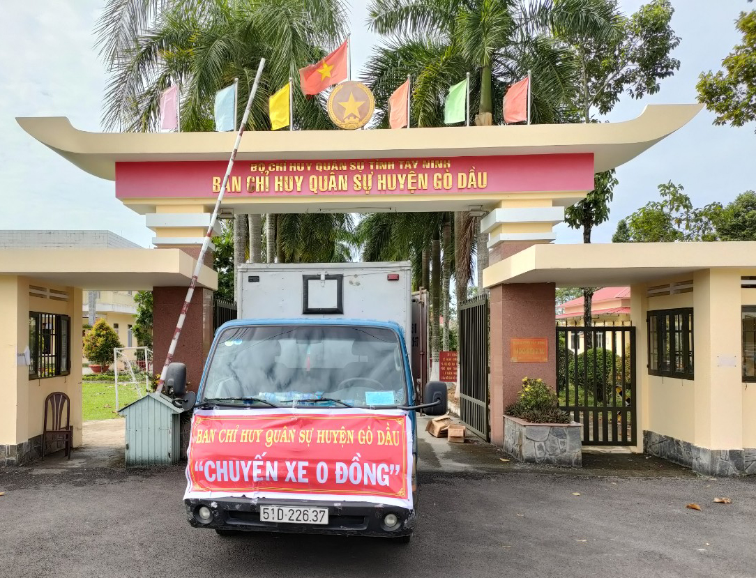 Từ ngày 28.7 đến 30.7, nhằm hỗ trợ người dân bị ảnh hưởng Covid-19, Ban CHQS huyện Gò Dầu đã vận động mạnh thường quân, cán bộ, chiến sĩ và người thân chung tay ủng hộ vật chất, tổ chức “chuyến xe 0 đồng” hỗ trợ những người gặp khó khăn vì dịch bệnh trên địa bàn.