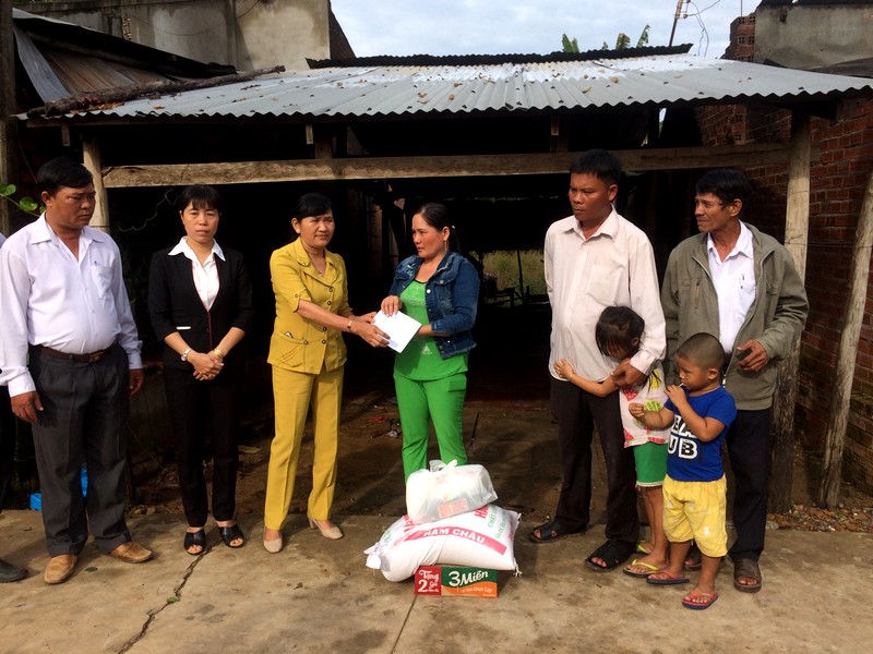 Lãnh đạo địa phương trợ cấp cho gia đình anh Thanh. |