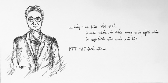 Ký hoạ Phó Thủ tướng Vũ Đức Đam phát biểu trong cuộc họp triển khai phương án phòng chống dịch bệnh cho cả nước.