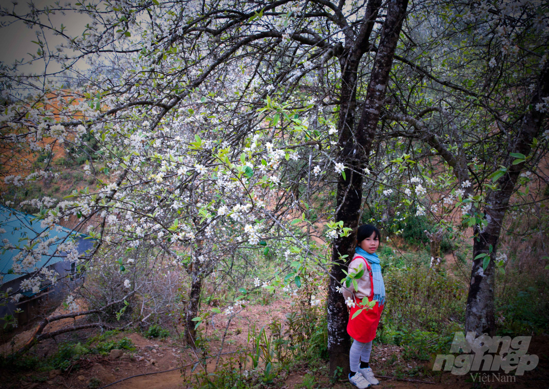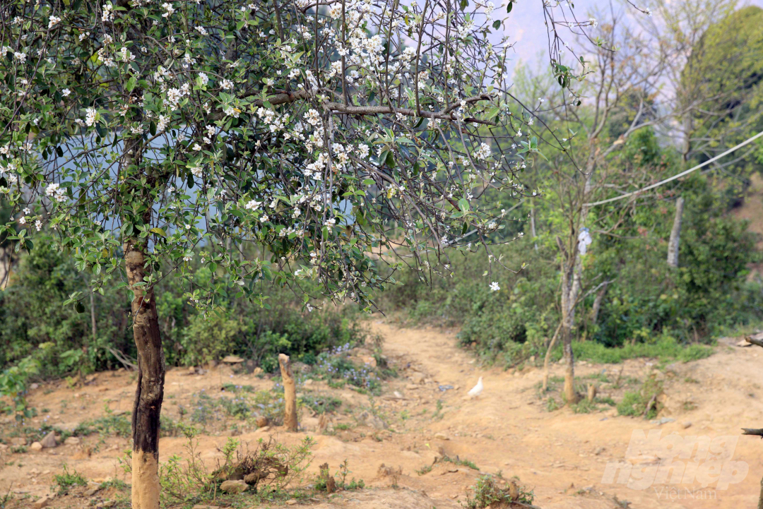 Cây hoa táo mèo có khi thấp thoáng bên những con đường đất, bên những ngôi nhà của đồng bào dân tộc Mông ở Xím Vàng.