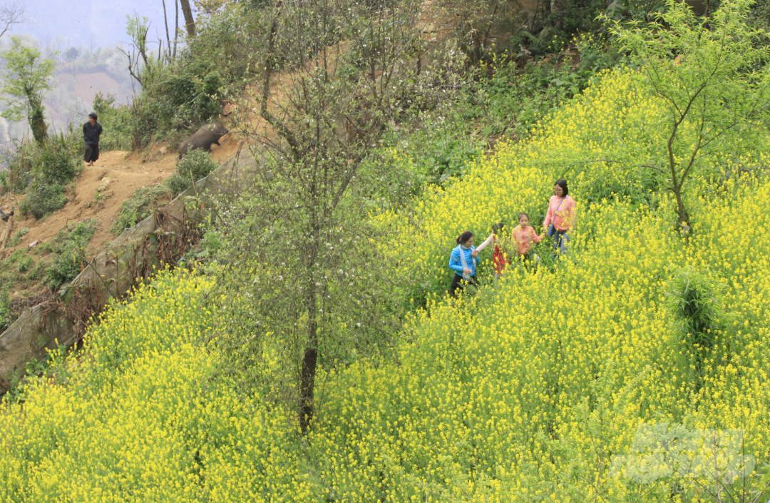 … và thời điểm này, những vườn cải vàng của bà con dân tộc Mông ở Xím Vàng nở hoa vàng rực, làm nền cho cây táo mèo đơm hoa như bức tranh đa sắc của miền sơn cước.