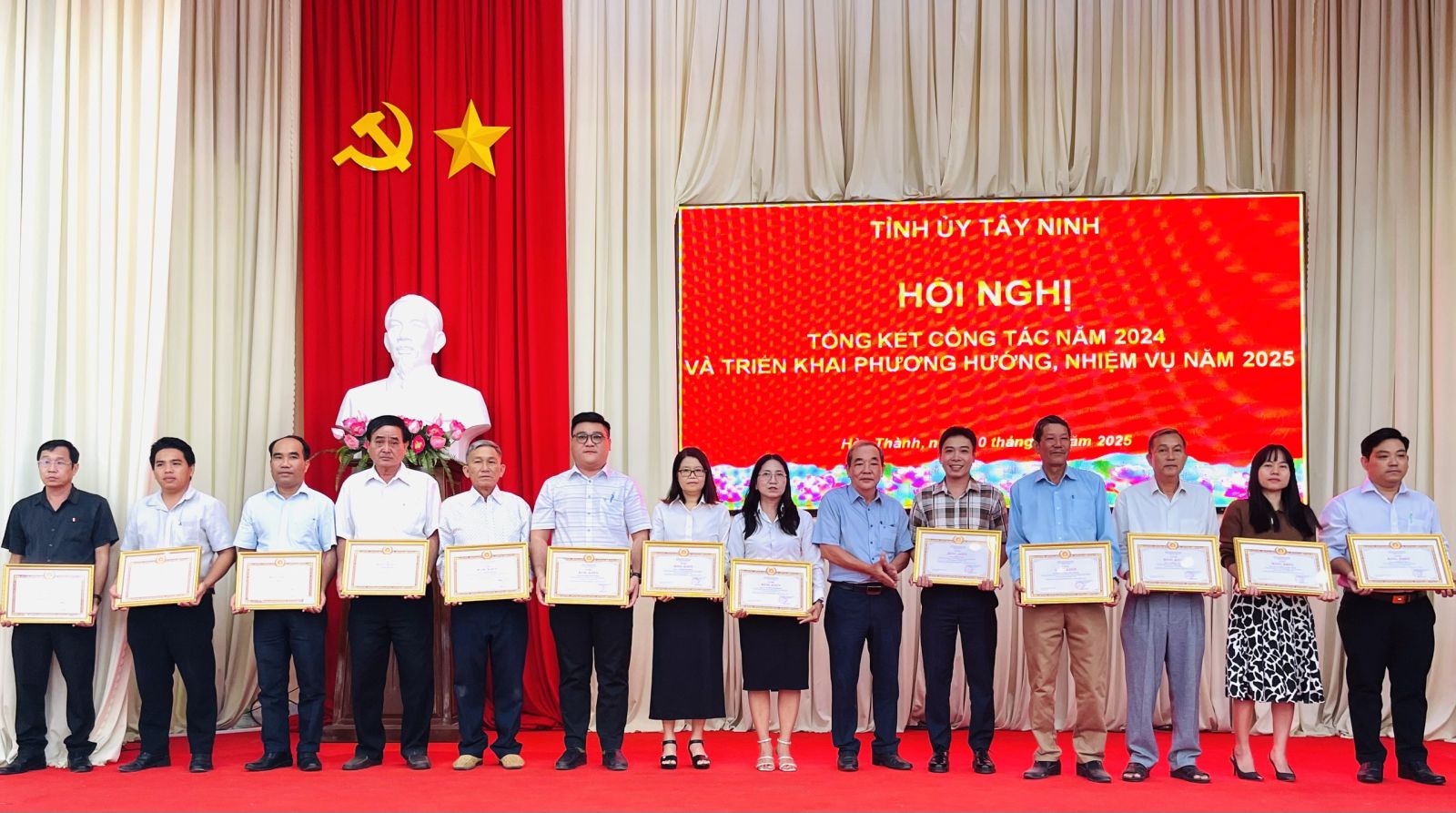 Ngày 10.1, ông Nguyễn Văn Phong- Phó Bí thư Thường trực Thị uỷ, Chủ tịch HĐND thị xã Hoà Thành chủ trì hội nghị công bố quyết định của Ban Thường vụ Tỉnh uỷ Tây Ninh về việc tặng bằng khen cho 62 đảng viên đạt tiêu chuẩn “Hoàn thành xuất sắc nhiệm vụ” tiêu biểu 5 năm liền (2020-2024).