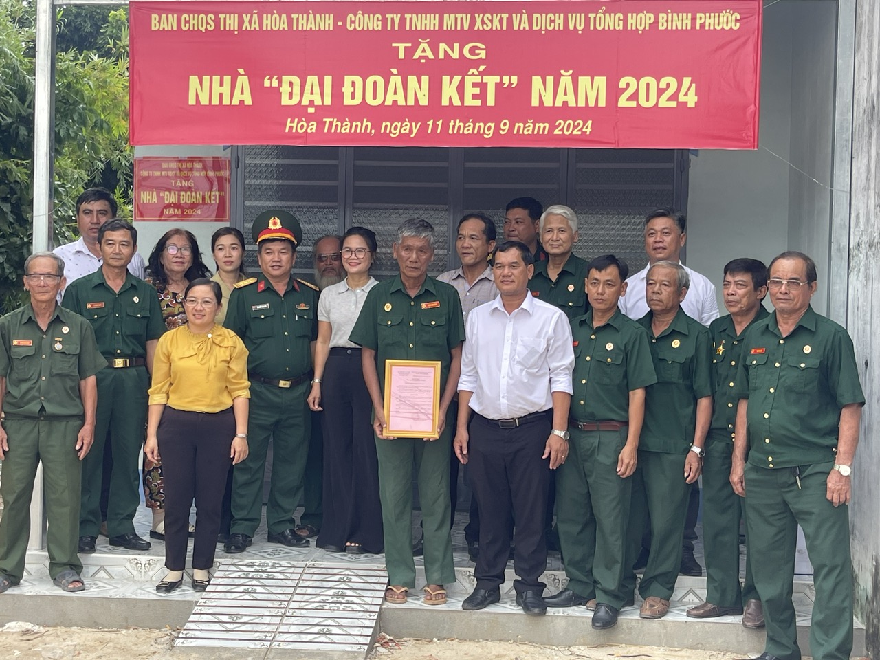 Căn nhà đại đoàn kết được bàn giao cho hội viên Cựu chiến binh Phạm Công Nhân (sinh năm 1967, ngụ ấp Trường Lưu, xã Trường Đông), có diện tích sử dụng 50m2, trị giá 95 triệu đồng.
