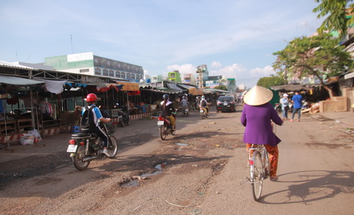 Trong các công trình, hiện đường Huỳnh Thanh Mừng (dài 710m) đang xuống cấp nặng, nhất là đoạn từ cửa số 3 đến cửa số 7 chợ, xuất hiện nhiều ổ gà, mặt đường bị bong tróc lớp nhựa. Nguyên nhân là do thời gian qua, các tiểu thương mua bán rau, thực phẩm tươi sống đã đổ nước ra mặt đường, cùng với việc vận chuyển vật tư vào xây dựng chợ.