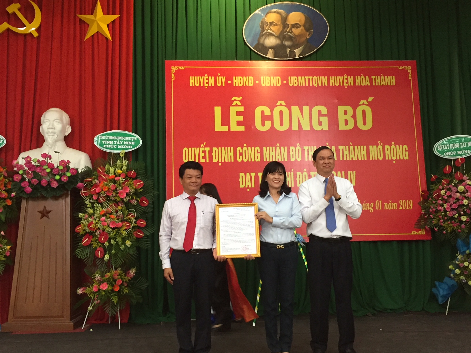 Qua thời gian nỗ lực xây dựng, ngày 28.12.2018, Bộ Xây dựng ban hành Quyết định công nhận đô thị Hòa Thành mở rộng đạt tiêu chí đô thị loại IV.